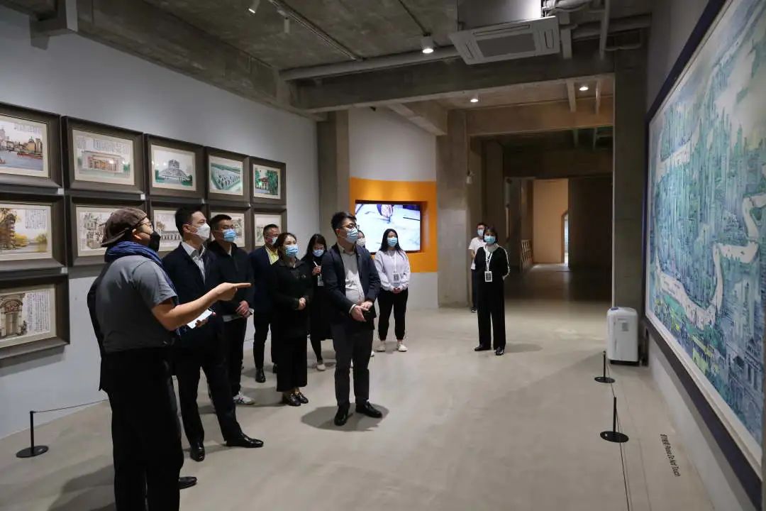 在商务服务部团队的介绍下,参访人员一行首先实地走访了园区内的上海艺术百代美术馆,认真细致聆听了美术馆的创建过程,并参观了即将开幕的“城·长——人民城市主题艺术展”的部分作品。绿地全球商品贸易港集团党委书记、总经理薛迎杰对展览的主题和作品表示非常认同,“与城市共成长”非常契合当下的发展主题,并表示在正式开展之后会再次前来观看学习。
