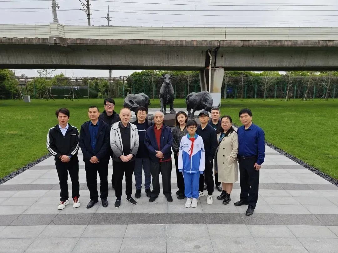上海汪氏宗亲在汪观清“精气神·三牛图”雕塑作品前合影