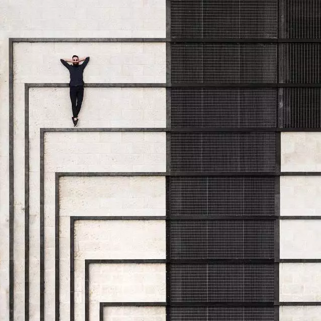 不论是一面红墙,还是回廊,抑或是不起眼的某个街道,他们都能运用得恰到好处。这对来自西班牙巴伦西亚的情侣以透视、几何和相机旅行世界,他们擅于挖掘建筑的特点,并且把自己变成了照片中的一个角色,用最有趣的方式和建筑进行互动。