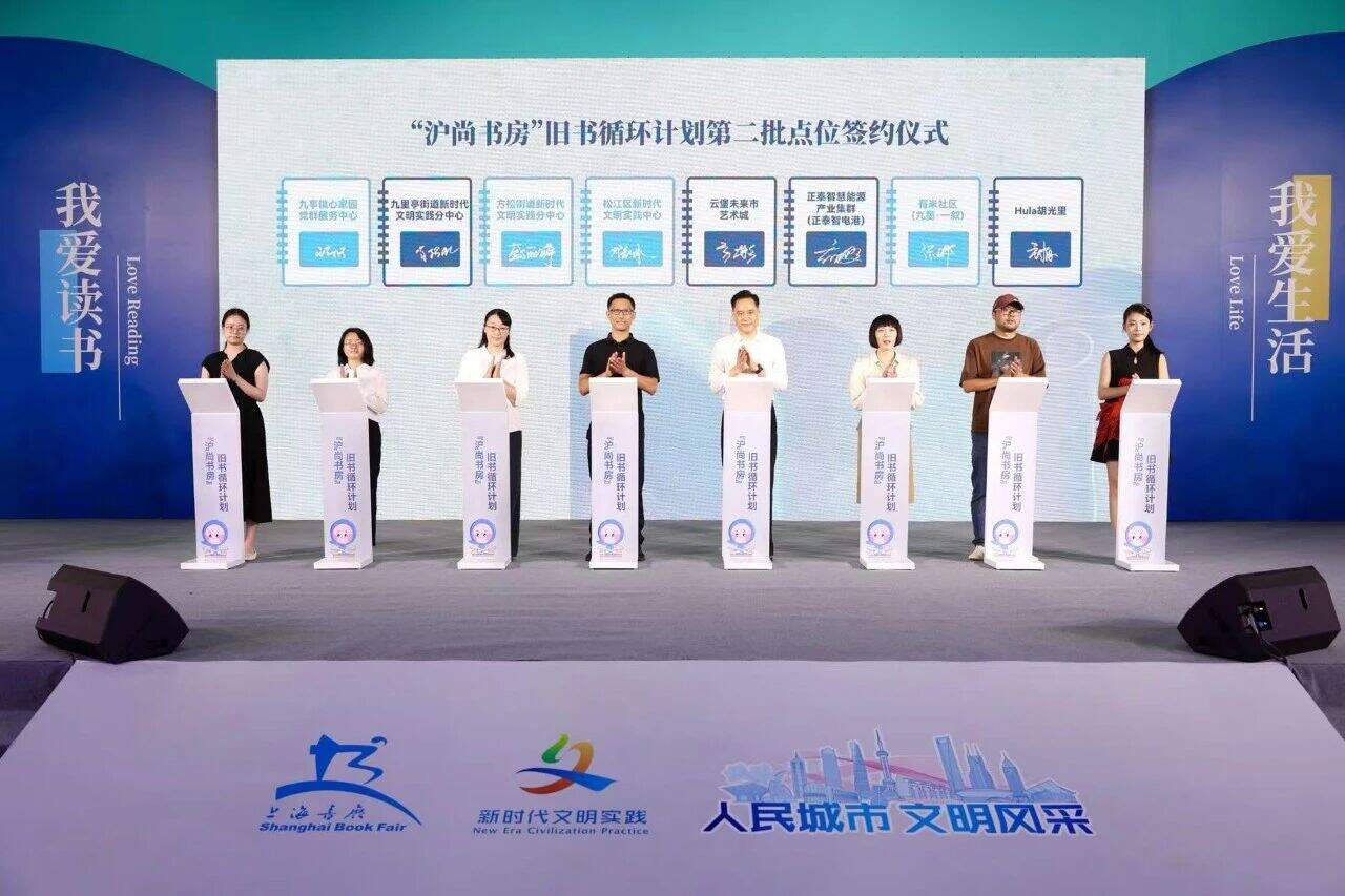 在全民阅读持续推进、书香上海建设不断深化的政策指引下,“沪尚书房”旧书新知循环计划乘势而上。继今年上半年首期 10 个示范点收获市民好评后,8 月 13 日,项目第二批点位签约仪式在2025上海书展松江分会场活动中正式启动,以旧书循环为纽带,进一步推进阅读新场景布局,让书香在城市烟火中愈发浓郁。